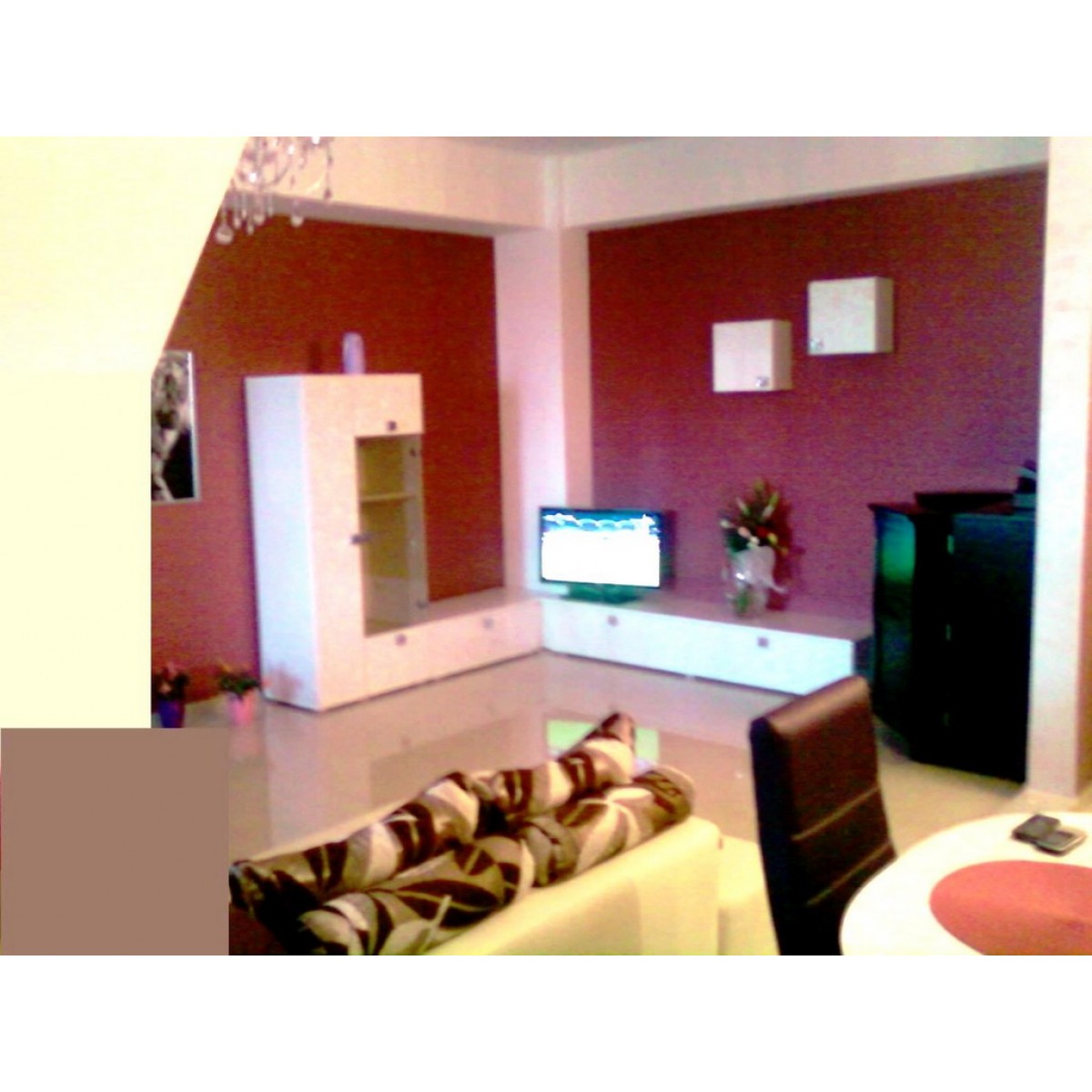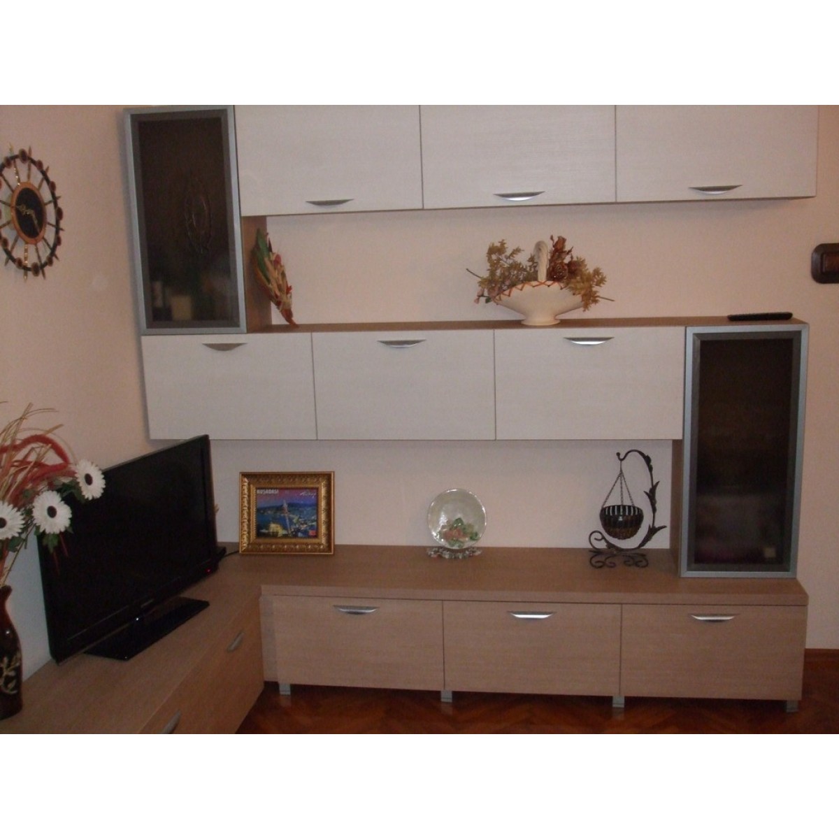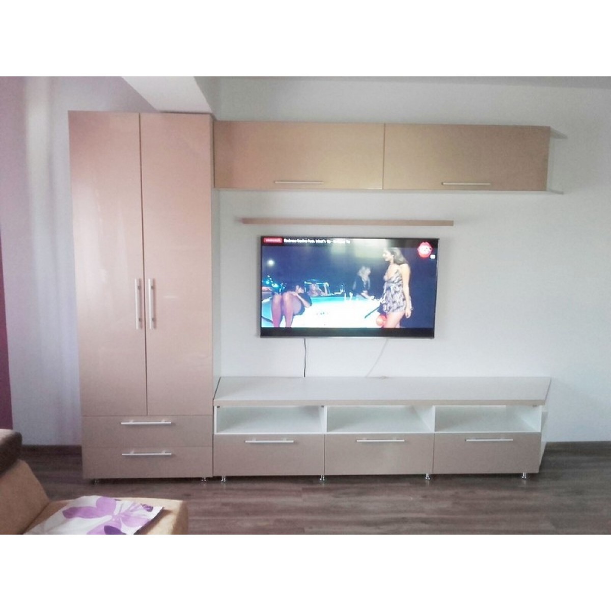 * Integrare armonioasă a zonei TV și a elementelor decorative